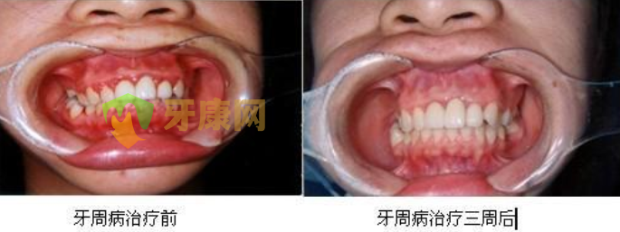 牙周病治疗前后对比示意图